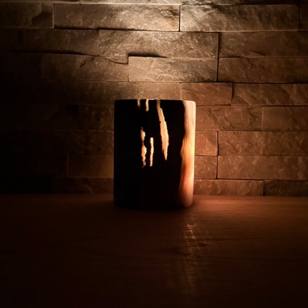- Krásný ve dne, ještě hlubší večer – denní světlo ukáže kresbu kamene, zapálená svíčka jí přidá hloubku, teplo a klidnou atmosféru.