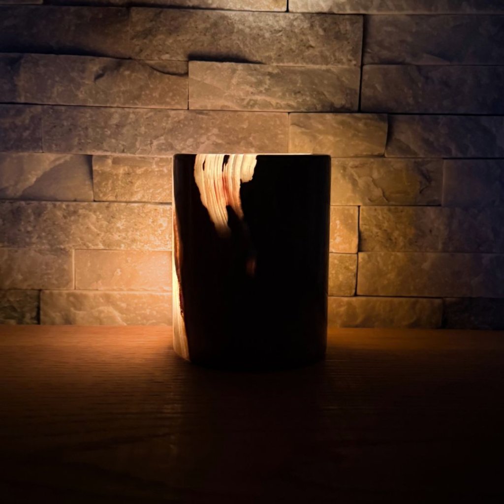 - Krásný ve dne, ještě hlubší večer – denní světlo ukáže kresbu kamene, zapálená svíčka jí přidá hloubku, teplo a klidnou atmosféru.