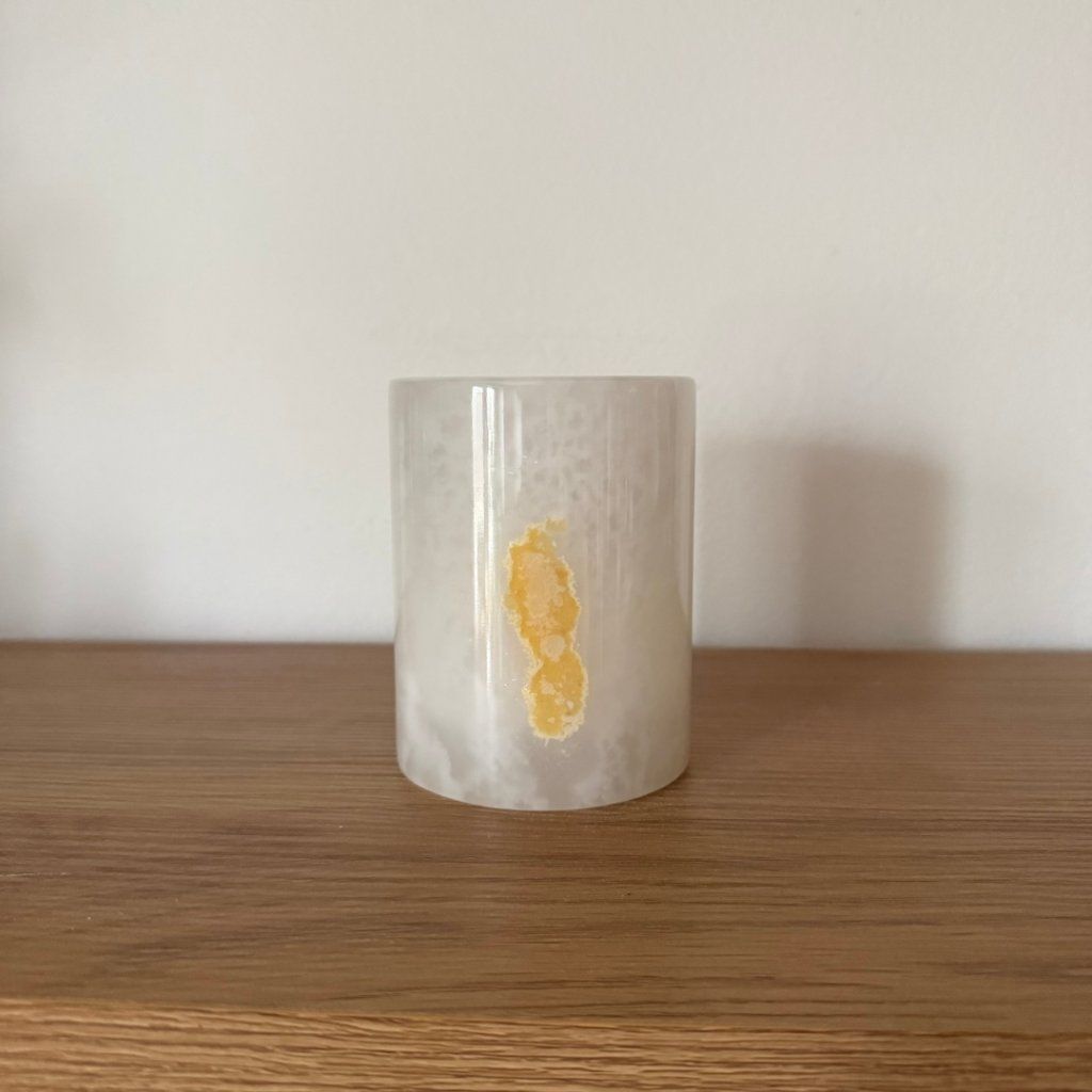 Každý svícen z aragonitu je jedinečný svým vzhledem. Tento konkrétní kus má přesně takovou strukturu, žilkování a barevnost, jakou vidíte na fotkách. Doporučujeme si fotogalerii projít opravdu pečlivě, abyste věděli, jaký svícen si domů vybíráte. Po zapálení čajové svíčky začne světlo jemně prosvítat kamenem a zvýrazní jeho přirozenou kresbu.