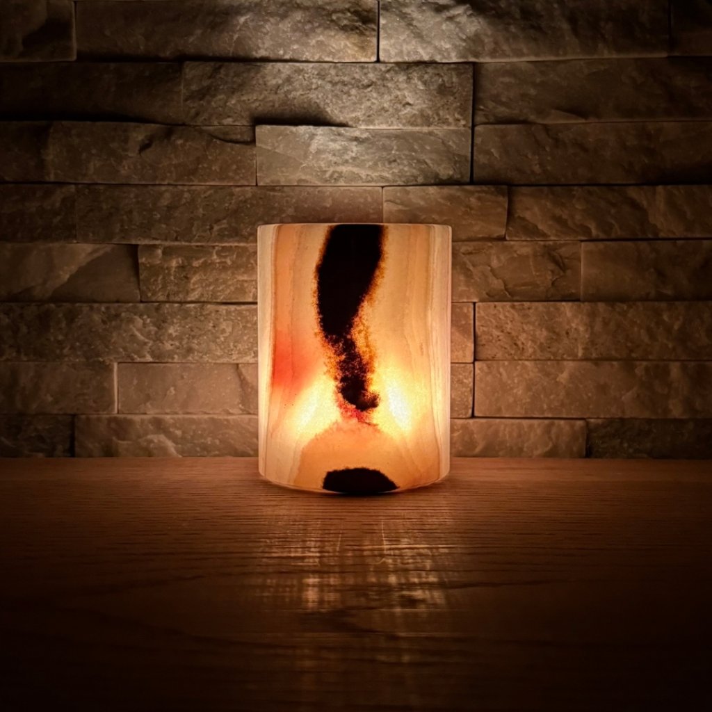 - Krásný ve dne, ještě hlubší večer – denní světlo ukáže kresbu kamene, zapálená svíčka jí přidá hloubku, teplo a klidnou atmosféru.