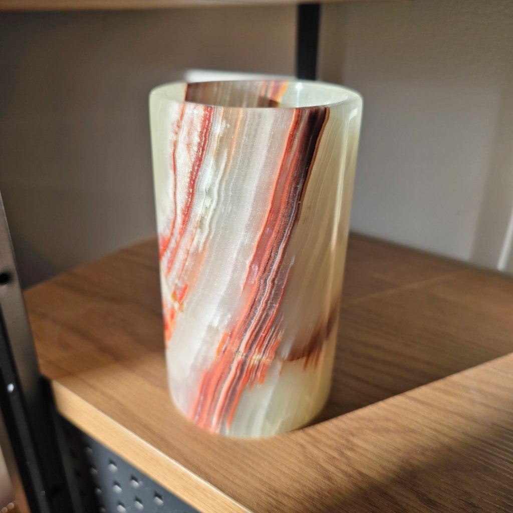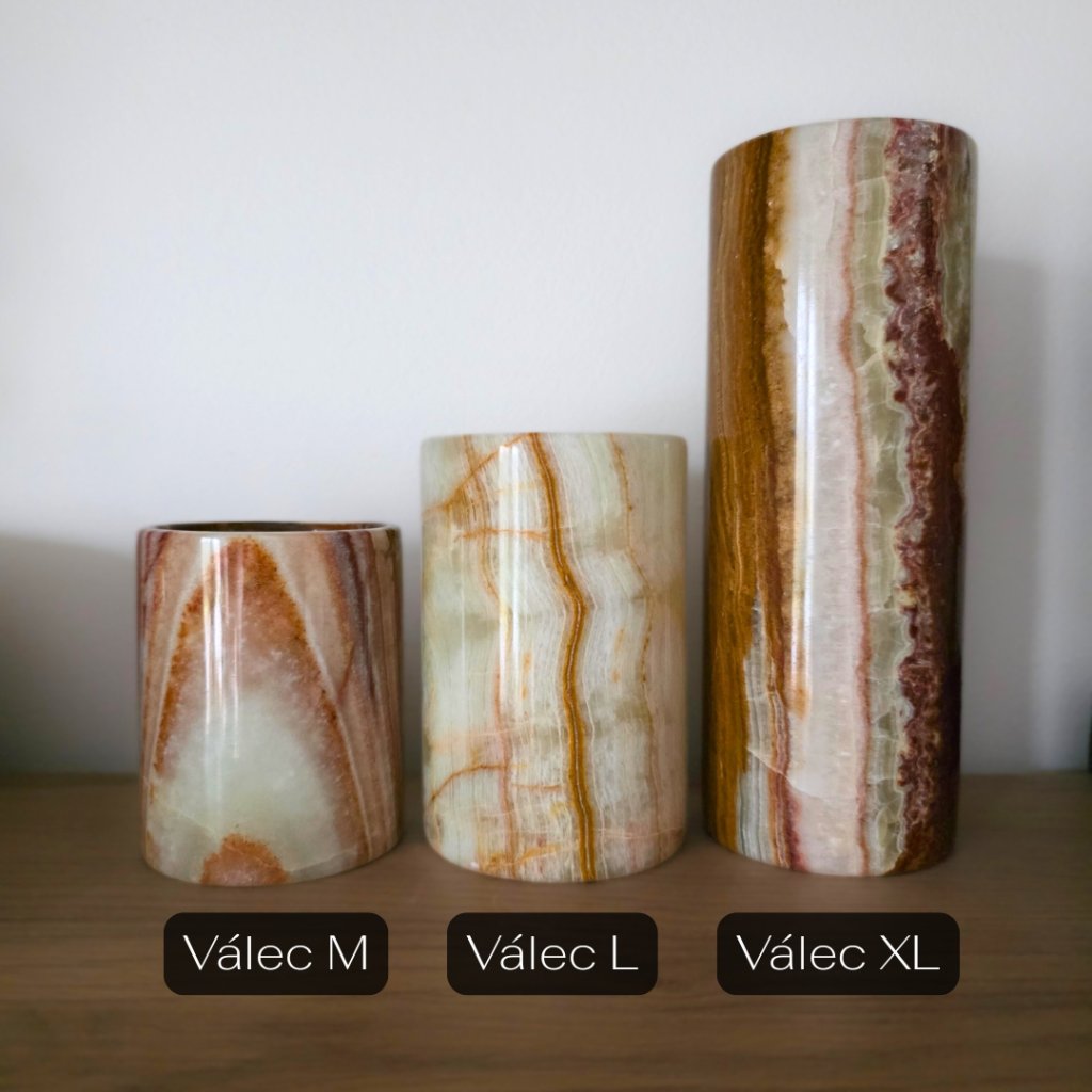 Svícen z přírodního kamene válec L výška 12 - 14 cm, pákistánský onyx, na čajovou svíčku