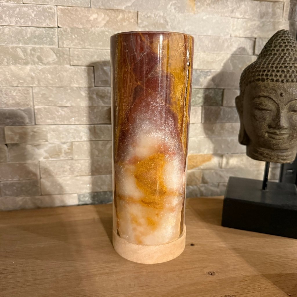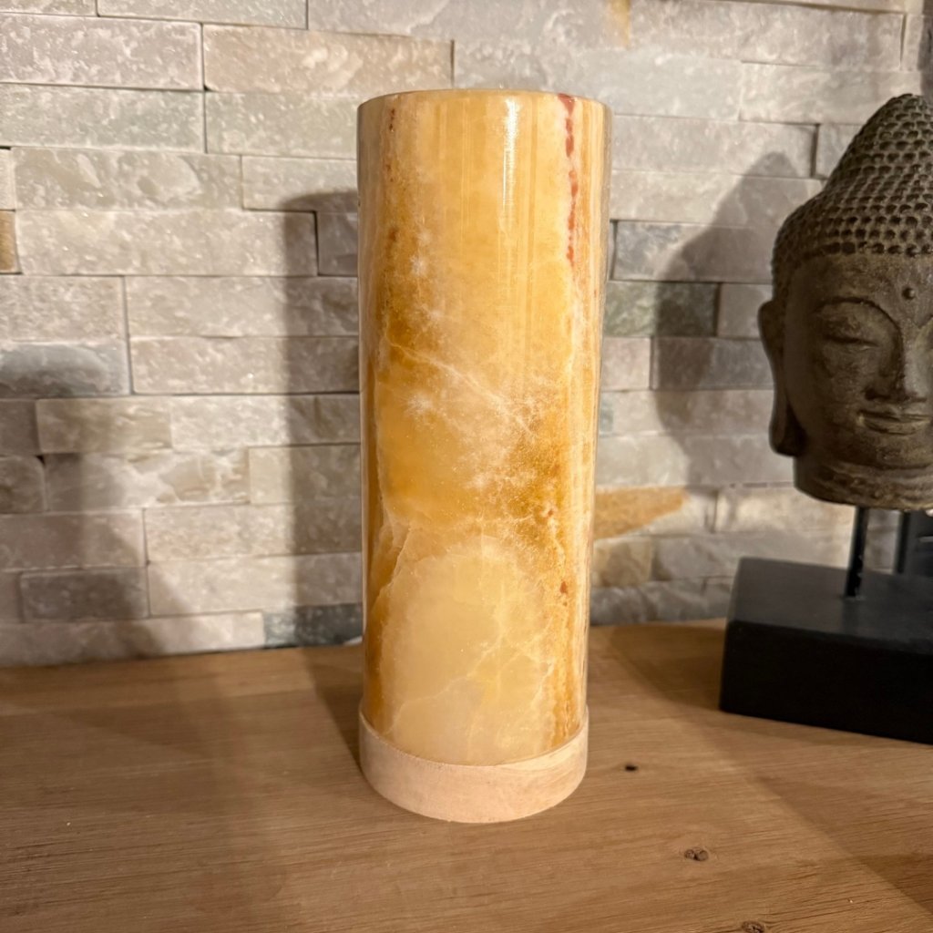 Svícen z přírodního kamene válec XL Pákistánský onyx, výška 20 cm, na čajovou svíčku