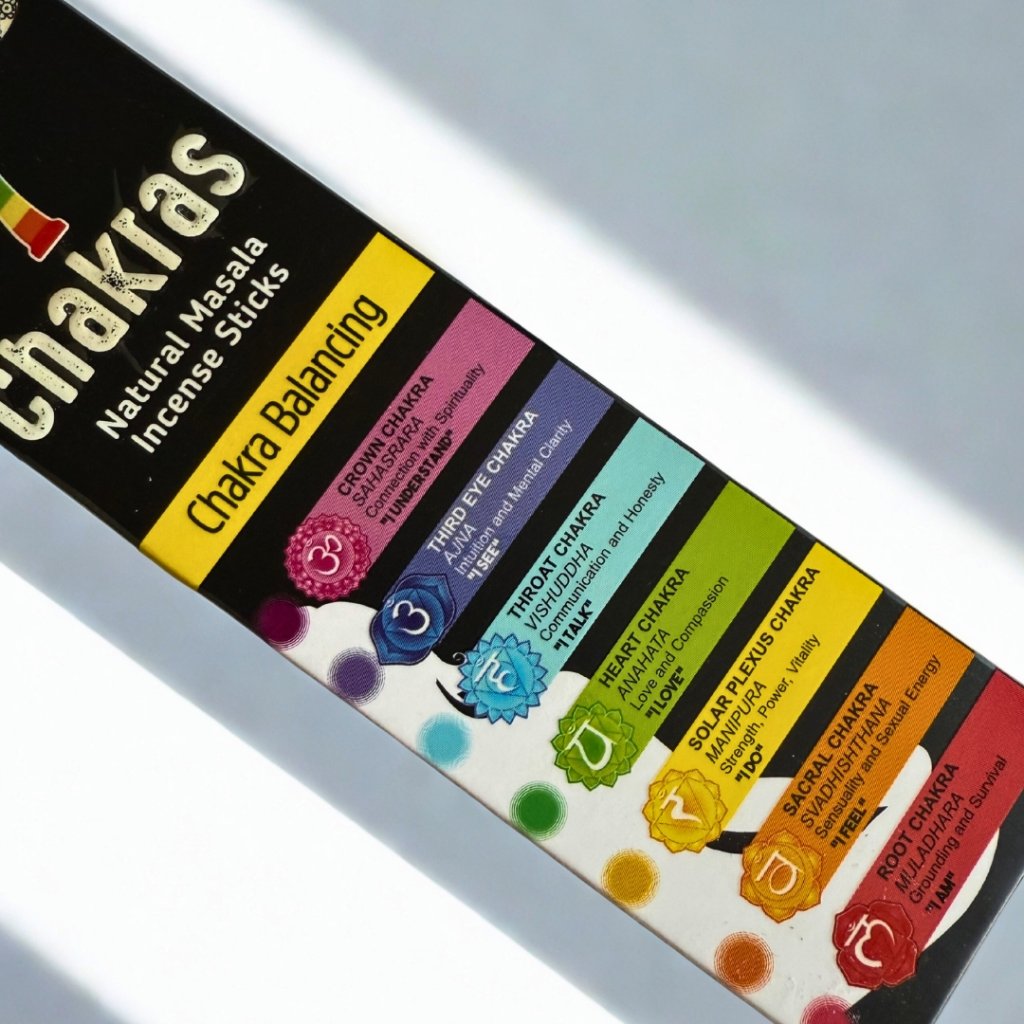 Sada přírodních masala tyčinek inspirovaná sedmi základními čakrami podporuje vnitřní rovnováhu a klid. Každá barva připomíná jiné téma, od uzemnění po nadhled, a dohromady vytváří jemnou, harmonickou vůni vhodnou pro meditaci, jógu i chvilky ticha.