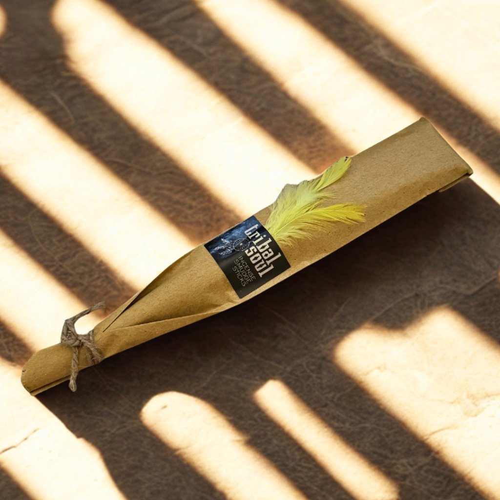 Tyto vonné tyčinky jsou ručně válené v Indii. Na obalu najdete označení bez dětské práce, eticky vyrobeno a pečeť čisté vůně od roku 1970. V balení je přibližně 12 až 14 kusů, hmotnost 15 g, délka jedné tyčinky zhruba 20 cm. Jedna tyčinka obvykle hoří 30 až 60 minut podle držáku a proudění vzduchu. Tyčinky jsou dárkově zabalené v sáčku s pírkem.