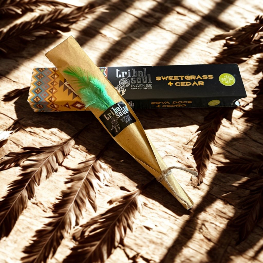 Sladká tráva se jemně dotkne smyslů vanilkovým nádechem a cedr dodá teplé dřevité zázemí. Společně tvoří vůni, která zklidní mysl, provoní domov a podpoří soustředění i odpočinek. Balení je navíc krásně zpracované a doplněné pírkem, takže potěší i jako milý dárek. Sladká tráva a cedr se tradičně spojují s pocitem očisty a ochrany prostoru. Užijte si je jako jemný rituál, který vám připomene, že je potřeba občas zpomalit a nadechnout se.