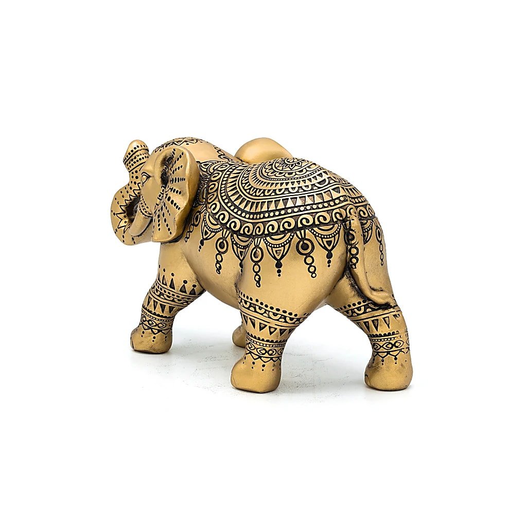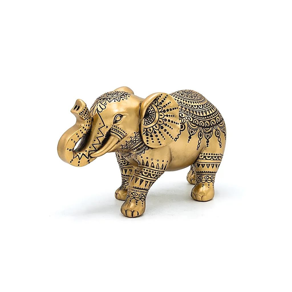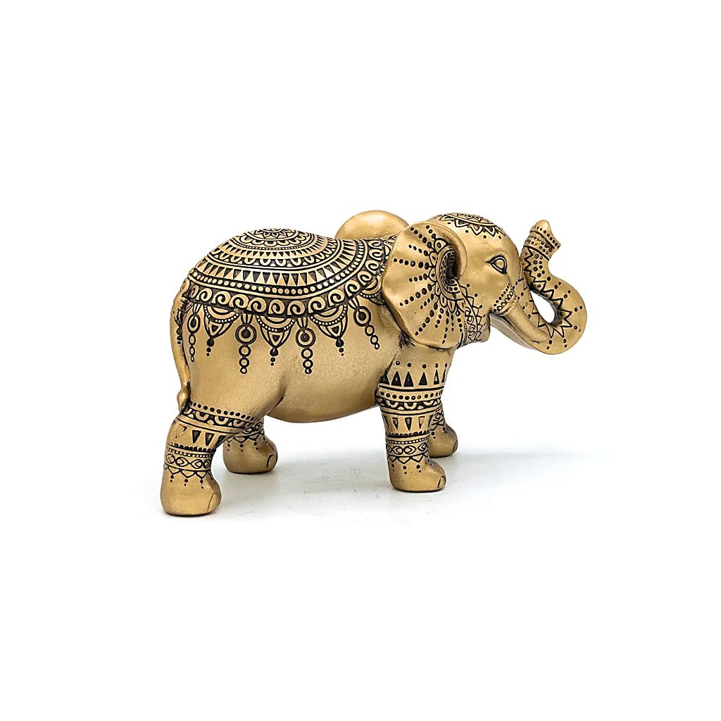 Zlatá soška posvátného slona Délka 22 cm, zlatá barva, dekor černé mandaly