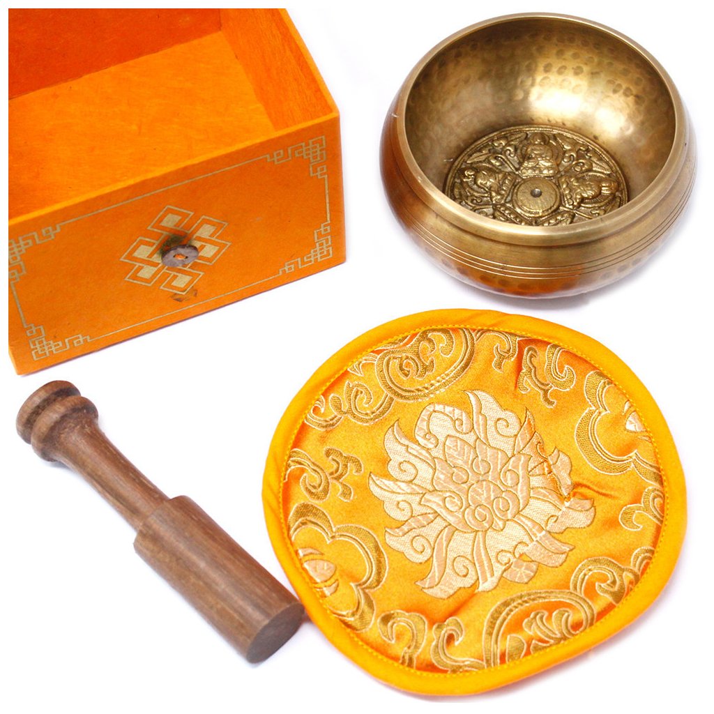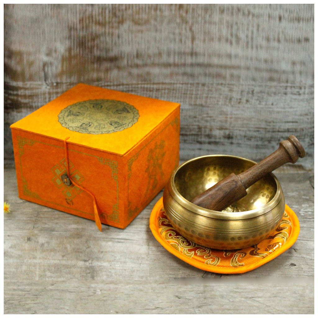 Obsah balení: | Tibetská zpívající mísa, Palička, podpůrný polštářek v oranžové barvě, Dárková krabička z papíru lokta v oranžové barvě |