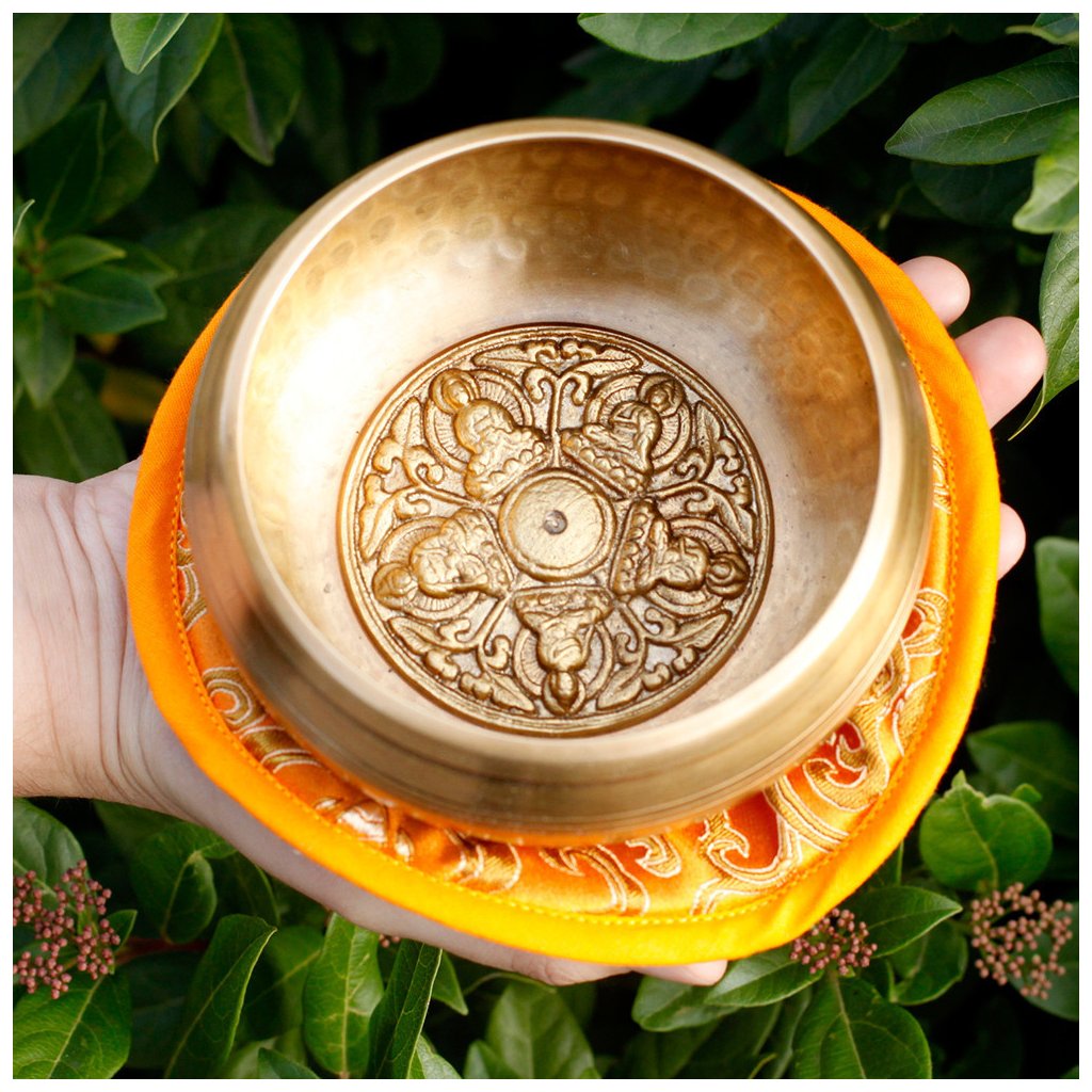 - Tradiční nepálská výroba – miska vznikla ručním tepaním a gravírováním, takže každý kus je originál s vlastním charakterem a jedinečným zvukem.